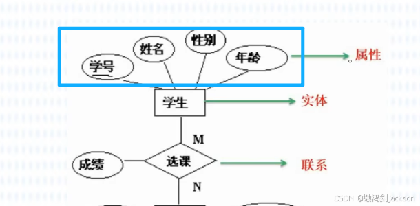 - 其他属性:就是"选课"这个联系原来的所有属性,此图是"成绩"