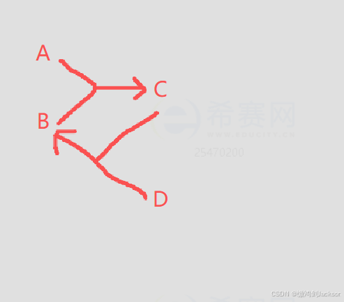 - 第二步:找入度为0的属性,此题A和D的入度为0,因此A、D是主属性。