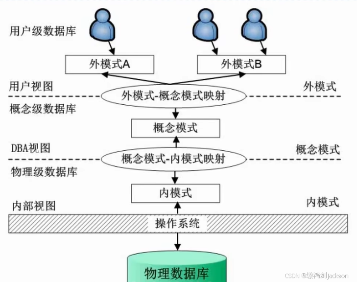 外模式(External Schema)对应于用户视图(View),即用户看到的数据结构。