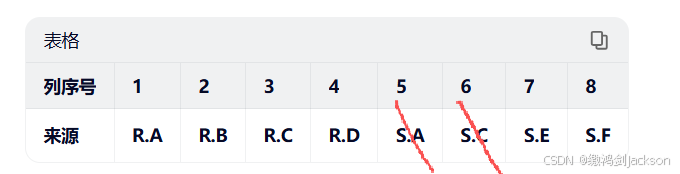 自然连接:两个表连接后,重复的列只保留一次。因此R和S自然连接以后,应该有8-2 = 6列(因为A和C两个列重复了,只能保留一次)。如下图所示: