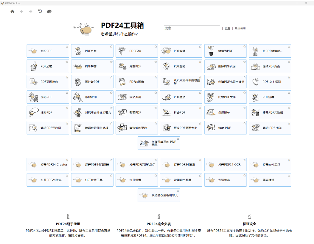 免费使用:PDF24 Creator 是一款完全免费的工具,没有任何隐藏费用或广告。