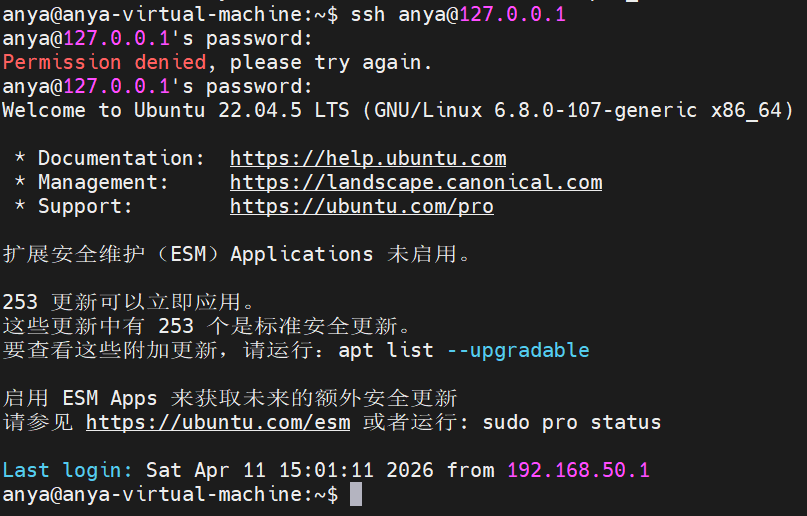 ssh anya@127.0.0.1
