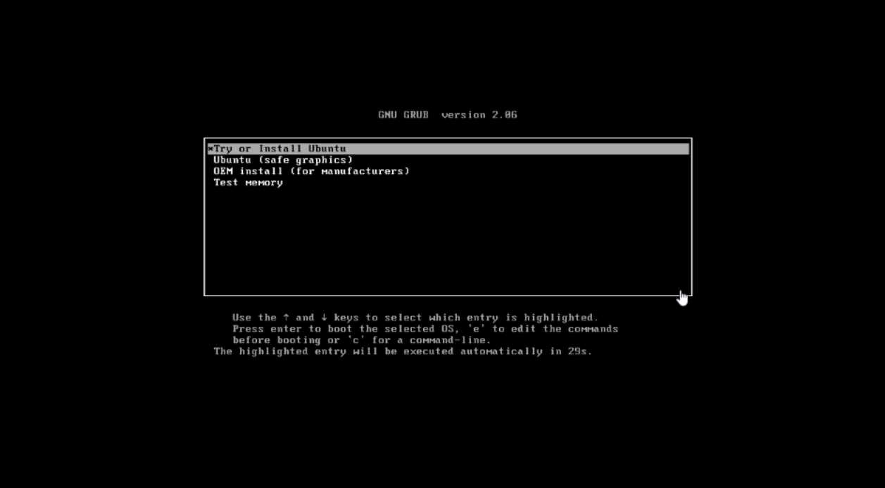 开启虚拟机,出现这个界面时,你可以什么都不做,或者按回车选择第一项