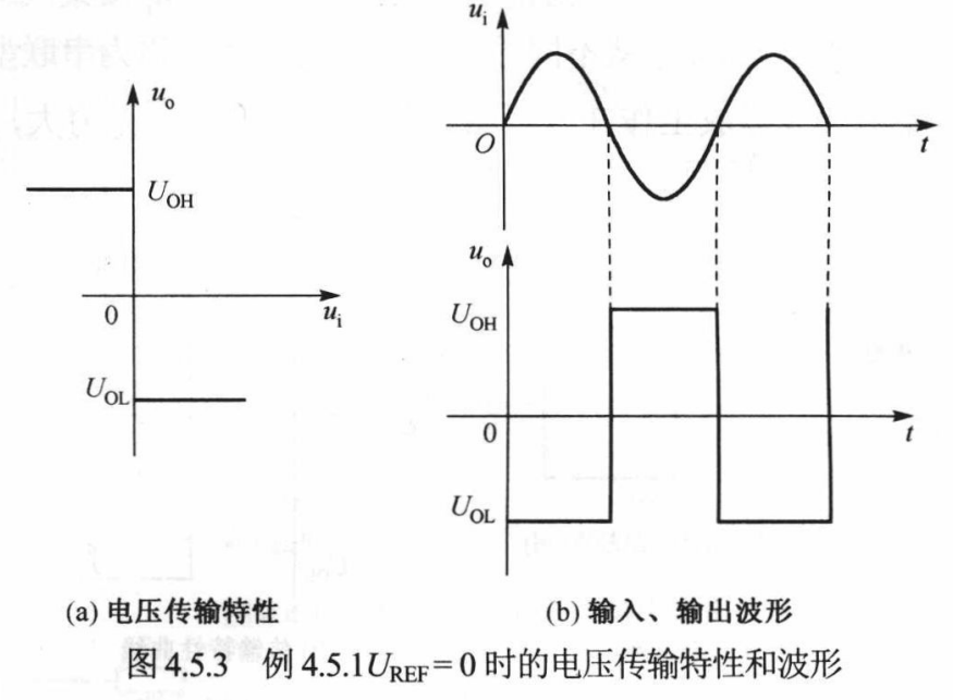 - 当输入电压uiu_iui小于参考电压时, 输出电压为高电平UOHU_{OH}UOH;