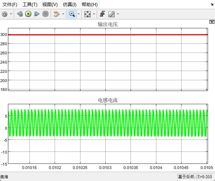 - 仿真设置:50ms仿真时长,100ns步长,离散模式,Tustin算法
