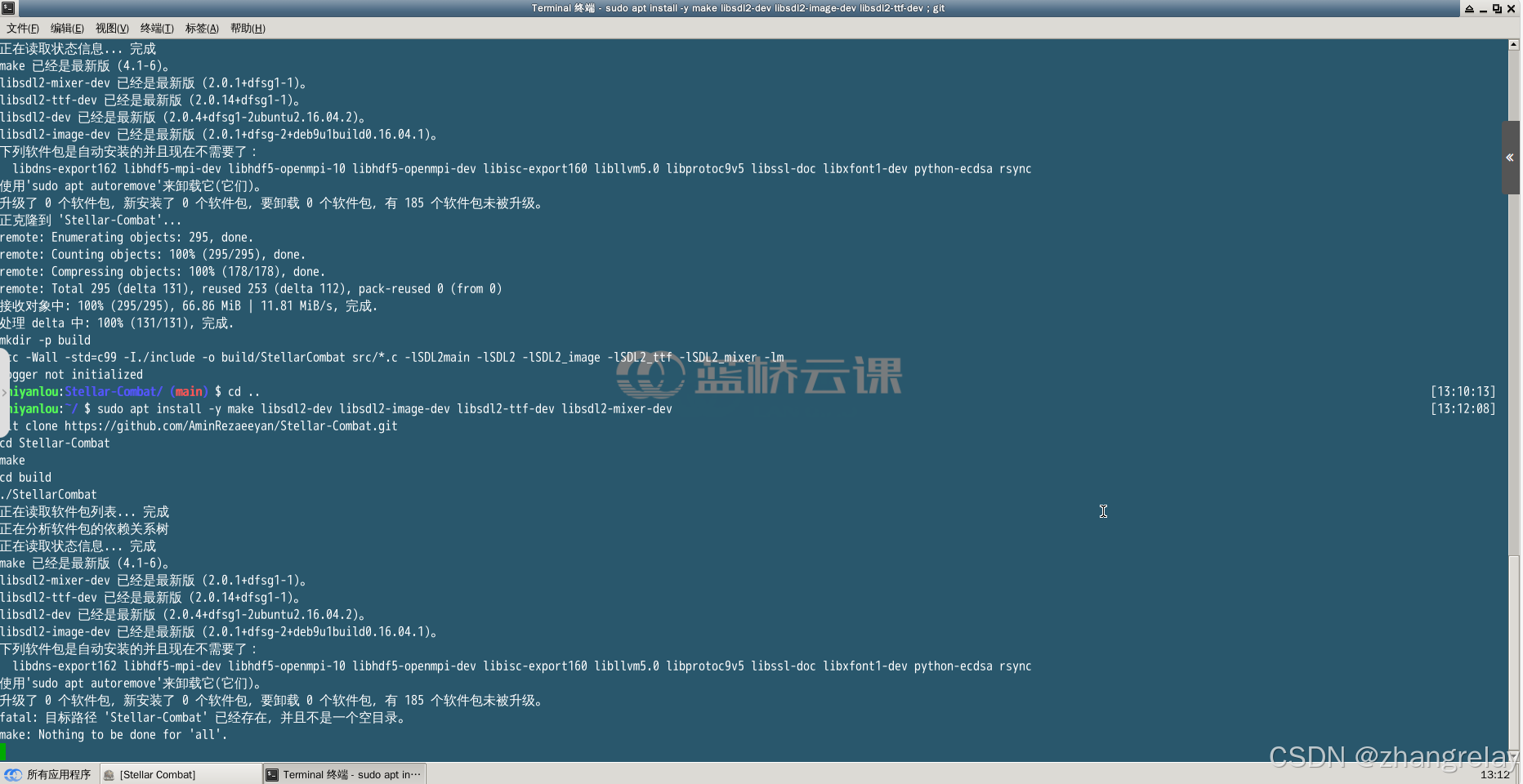 中文 Ubuntu / 蓝桥云课 Stellar Combat 完整配置 + 运行教程