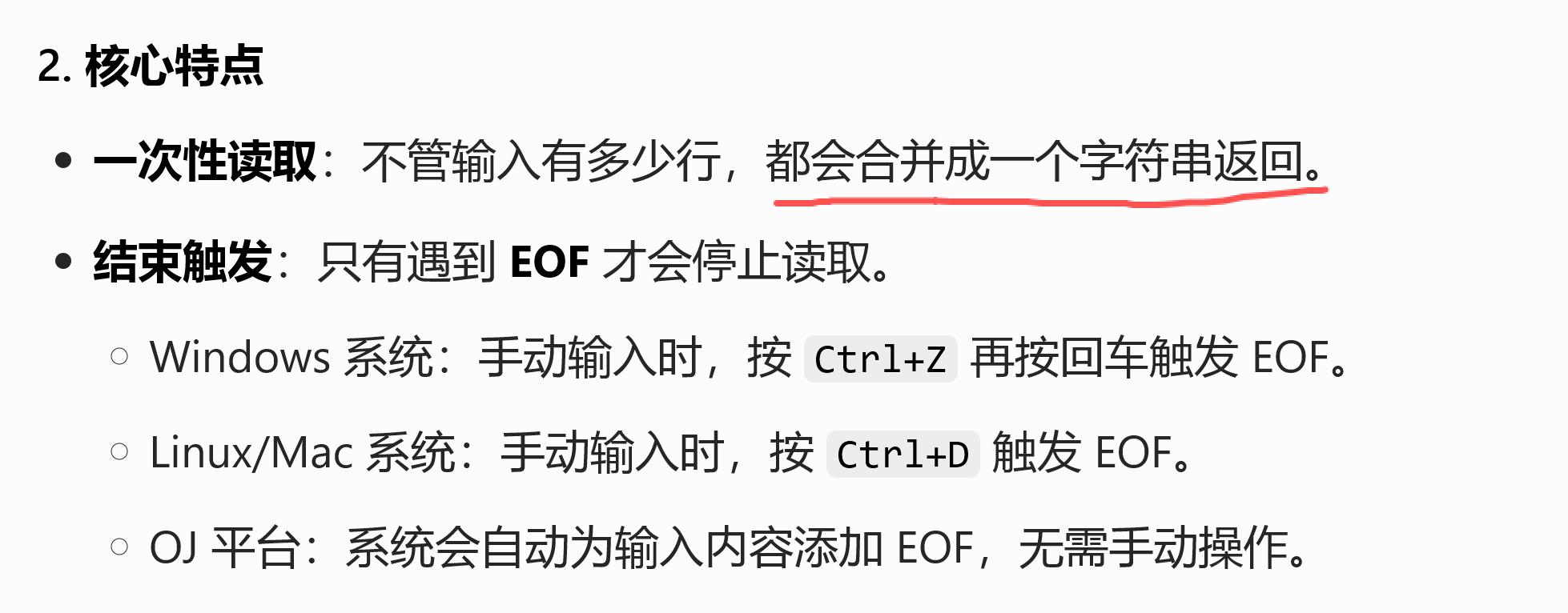 一次性读全部 | 遇到 EOF | 多行大文本(如 HTML、日志) |
