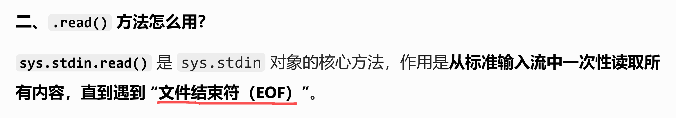 疑问:第一次用sys.stdin 和 .read() , 咋用,必须要一起用吗