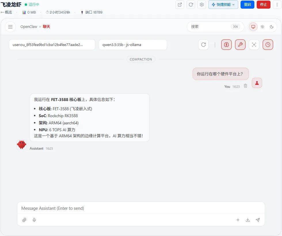 而JishuShell的出现,正是为了抹平技术门槛,释放OpenClaw的落地价值。飞凌嵌入式基于FET3588-C完成全链路验证,用实际案例证明:从部署到稳定运行,比喝一杯咖啡的时间还短。