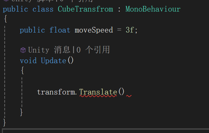 接下来我们就要编写我们的一个前进的逻辑,我们要去修改我们的物体的Transfrom的内容