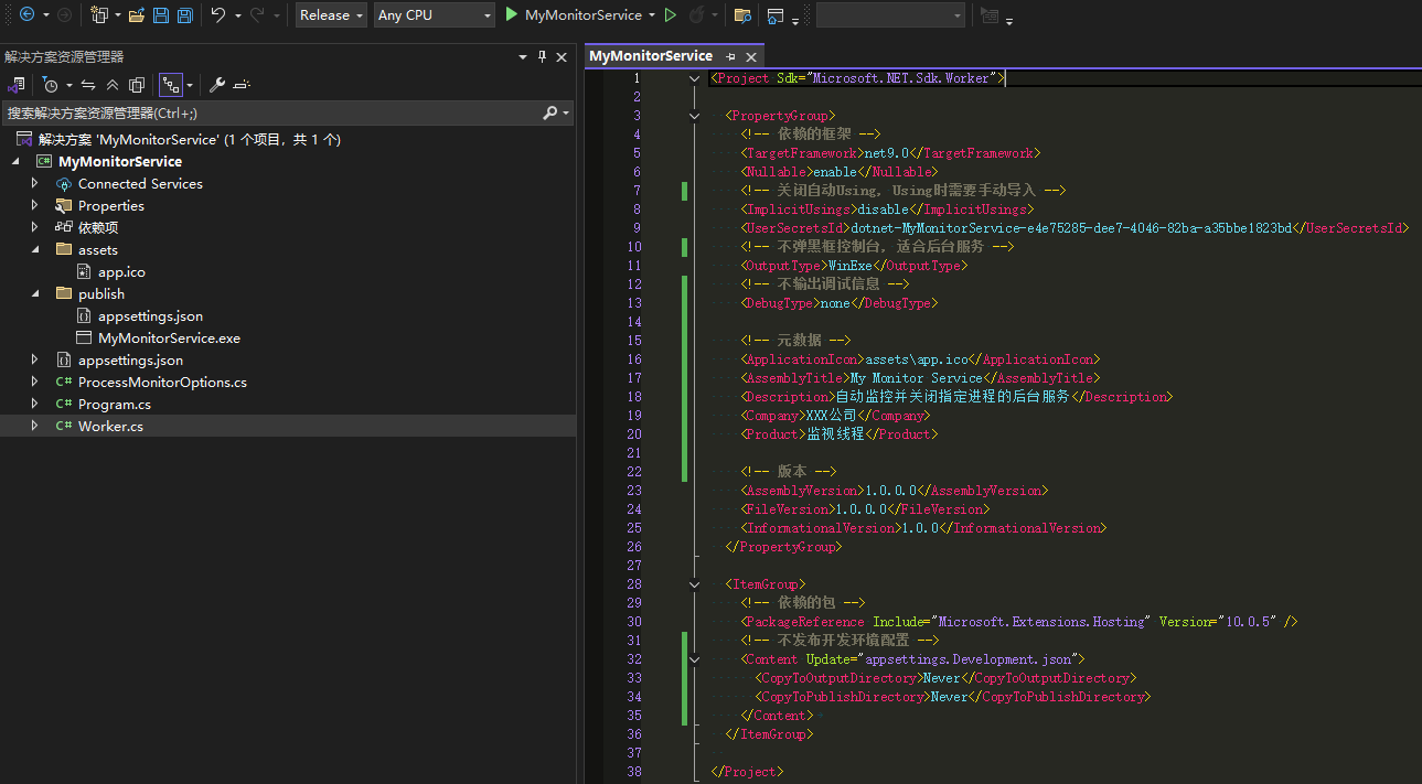 🔷项目创建完之后,修改MyMonitorService.csproj文件