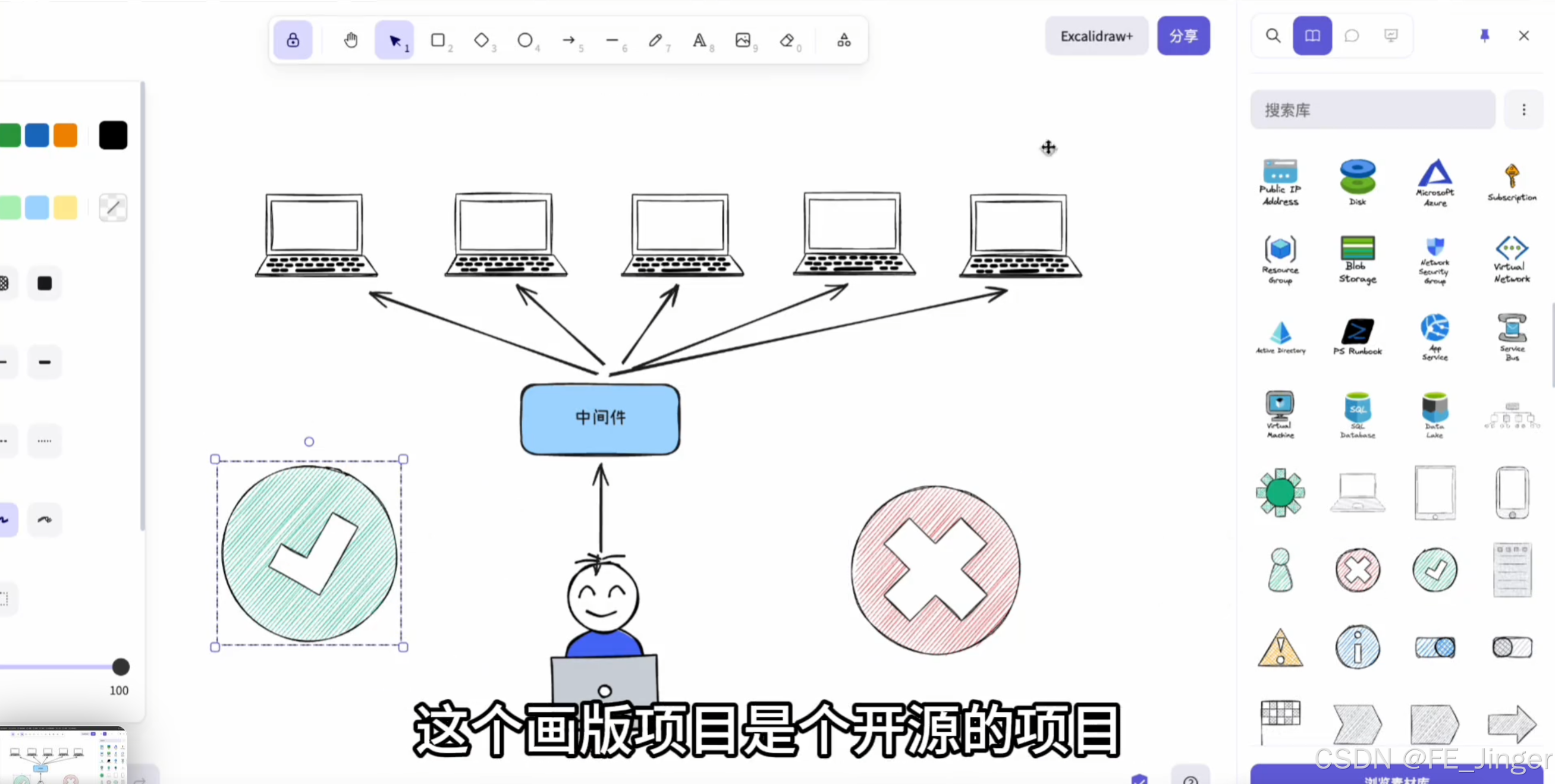 在线直接访问:https://excalidraw.com/,无需下载安装,打开浏览器即可绘图,支持中文界面,小白可秒上手。