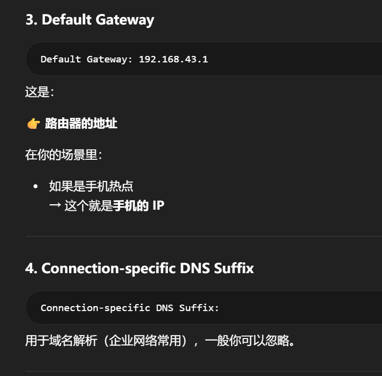 而在手机热点场景里,电脑要出网只能先交给手机,所以手机自然就是网关。