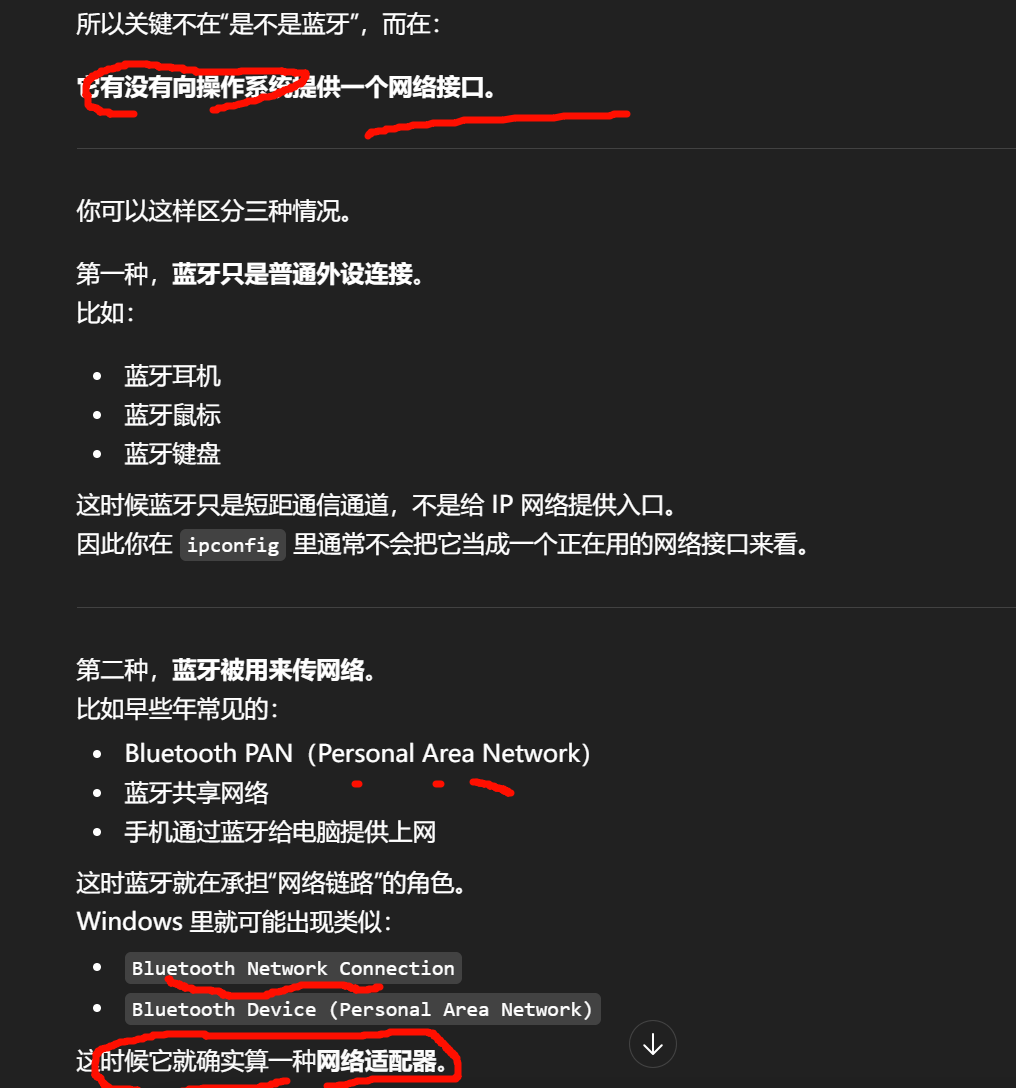 有 Default Gateway:通常说明这张网卡正在把某个设备当作上游路由器