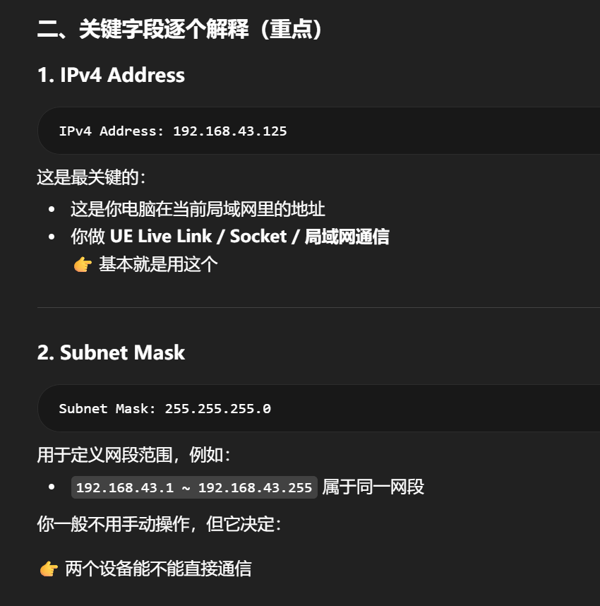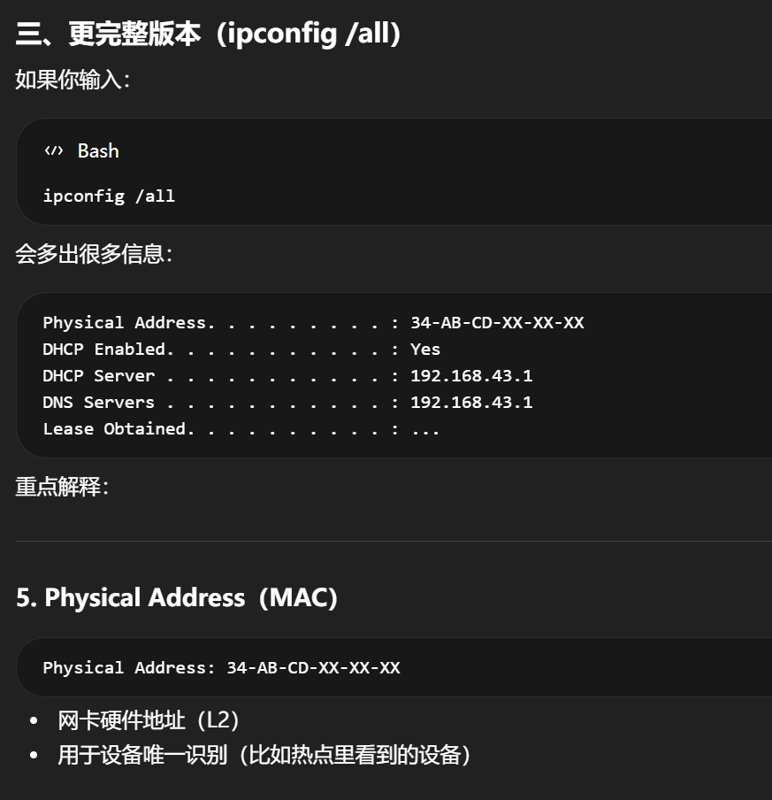 电脑上看 ipconfig 时,常见对应关系是: