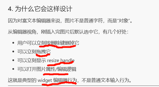 - 所以会出现这种现象:页面上看起来新文本加到了后面,但编辑器内部真正"认定的插入点"还停留在第一次成功 paste 的那个位置,于是后续图片仍然插到第一次的区域。