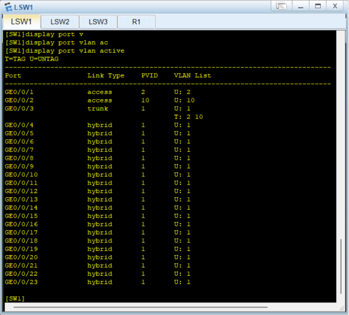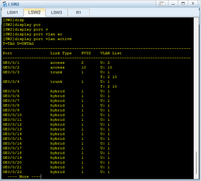 1.划分接口情况 (display port vlan active)
