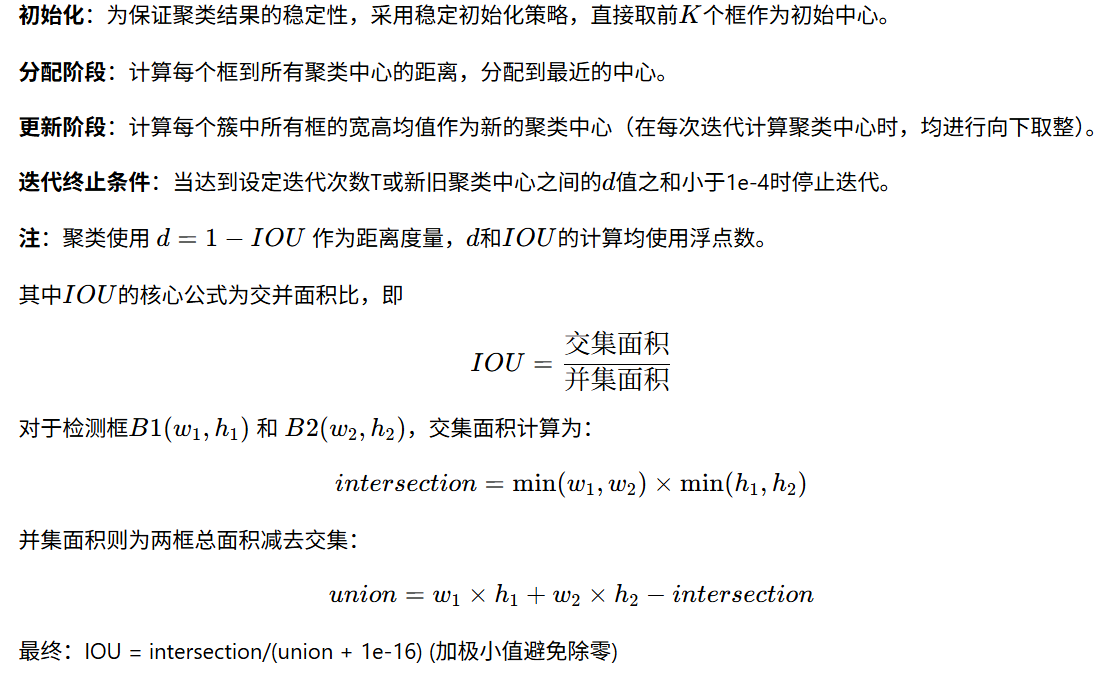 - 计算到每个聚类中心的dis(记得用1-iou计算),分配框到距离最近的中心