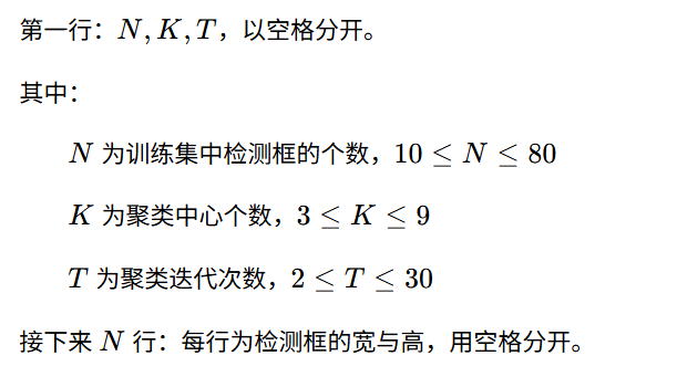 从输入输出描述就可以看出来要干什么了,但是聚类中心、结束条件、距离公式还不知道,因此要从题面找一下: