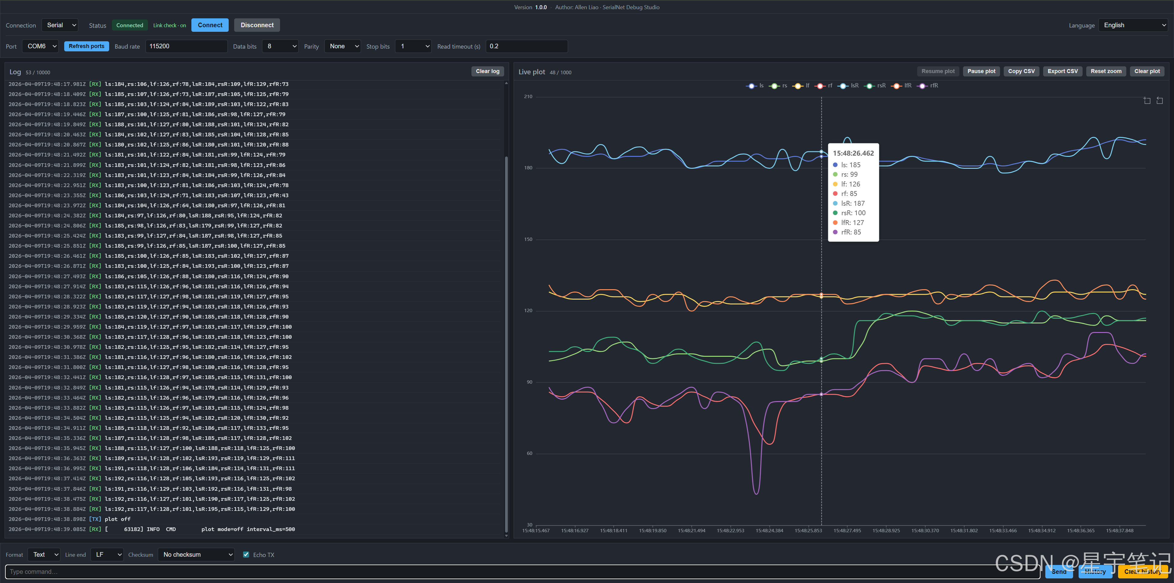 所以这个项目支持类似 Serial Plotter 的实时曲线,但不是只能画简单数字,而是支持 按通道名动态生成多通道曲线,例如: