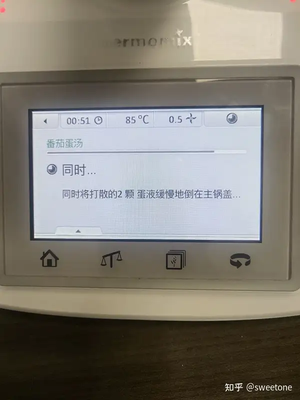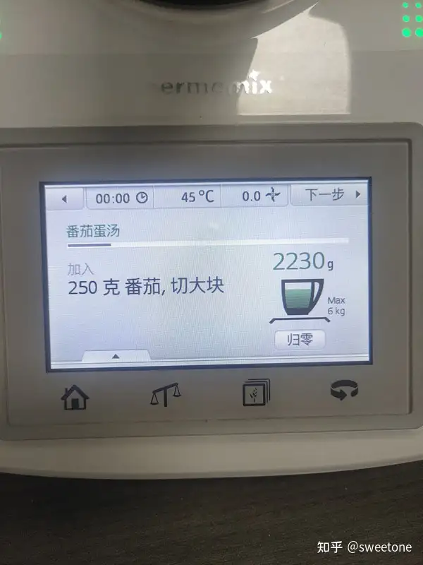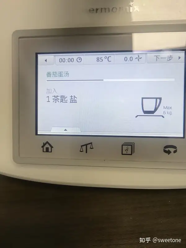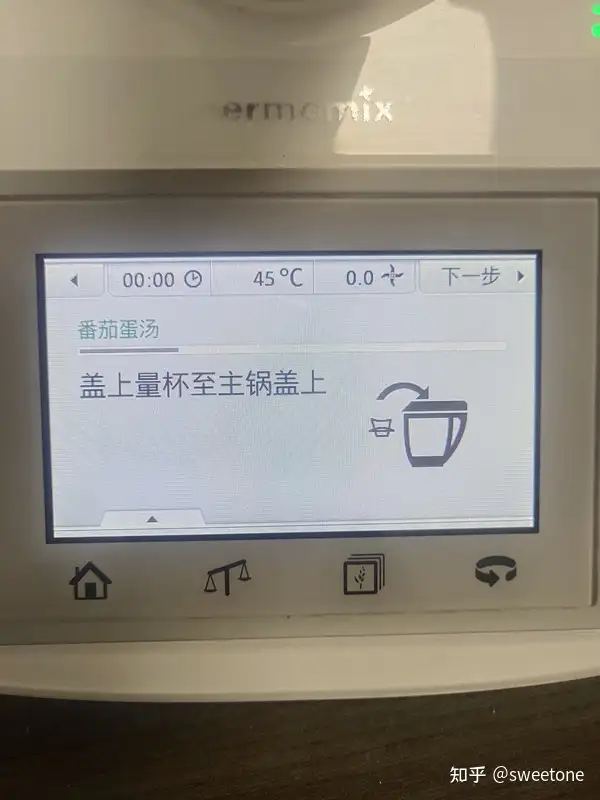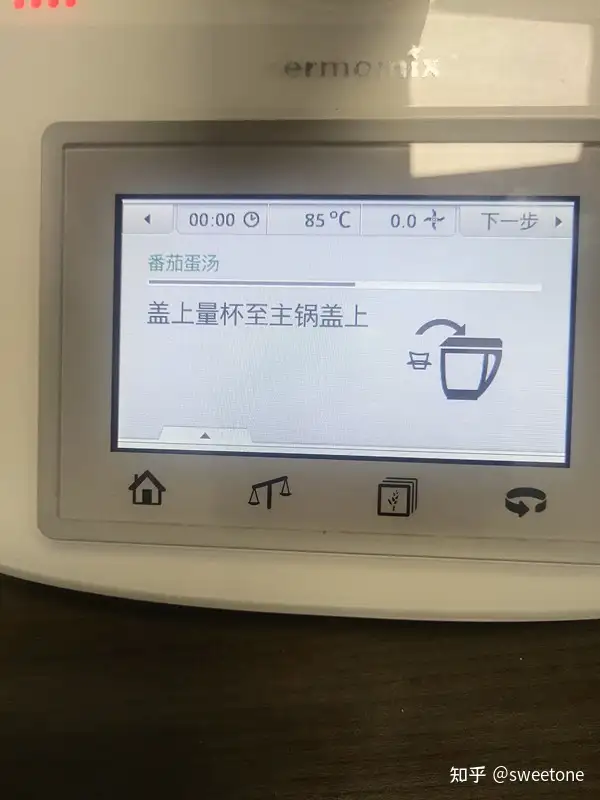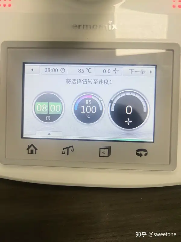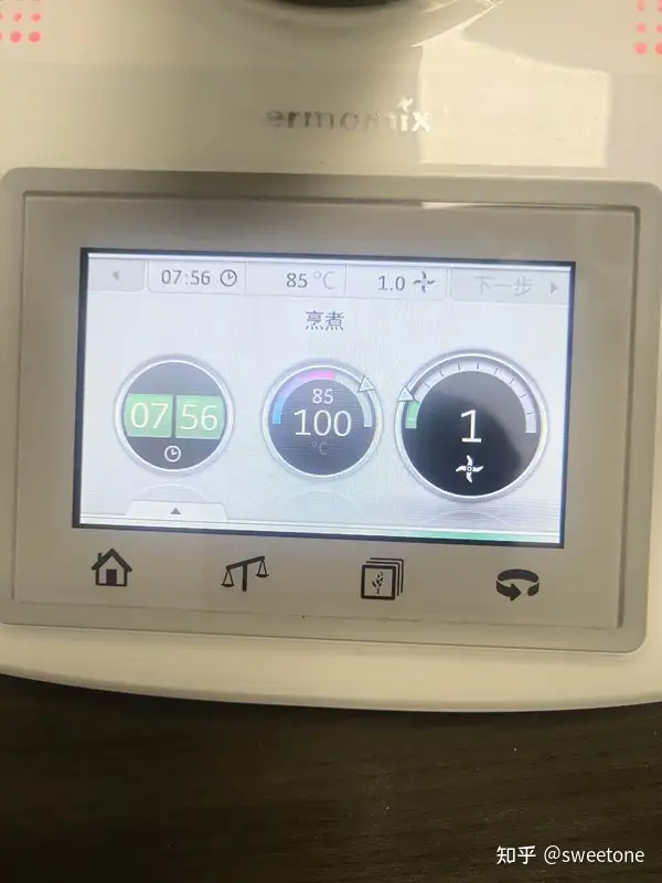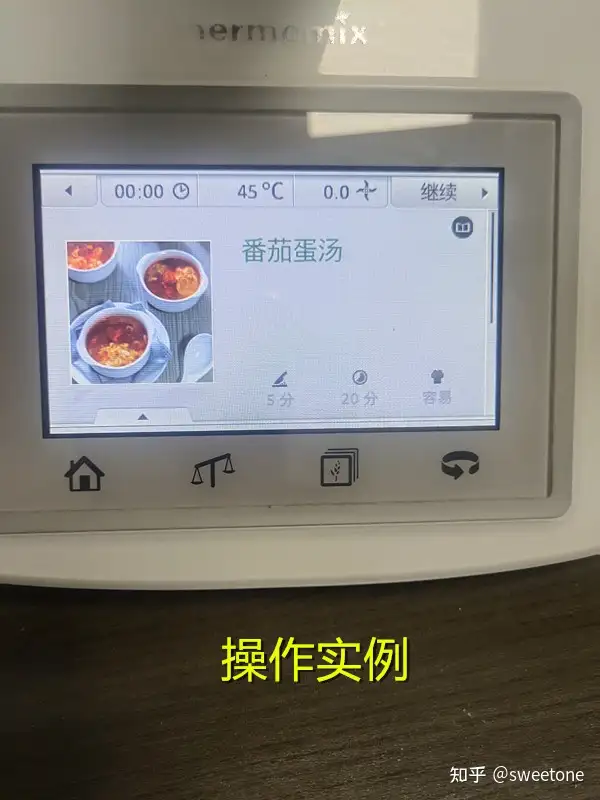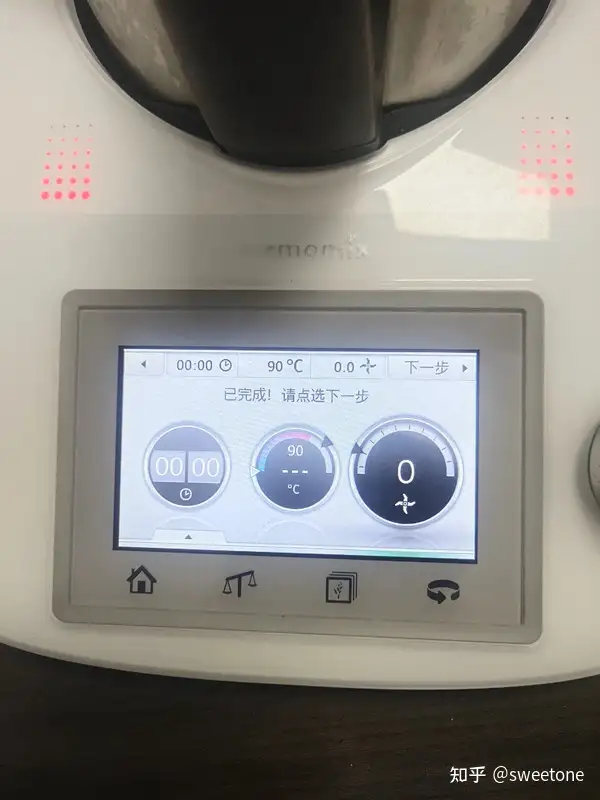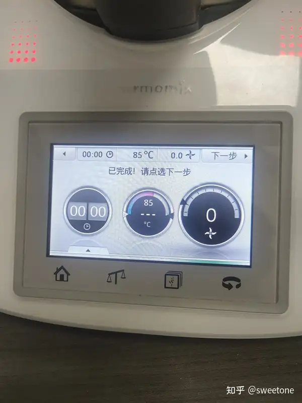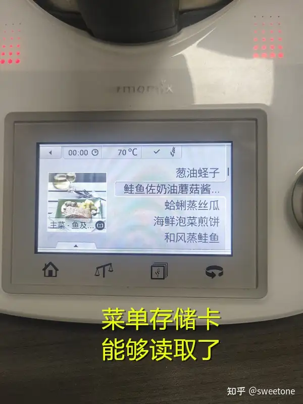 将存储卡连在料理机上,再试机:机器显示菜谱正常。选择某个菜式,用户可以在该机液晶触摸显示屏的操作提示下,与机器互动完成烹饪全过程。