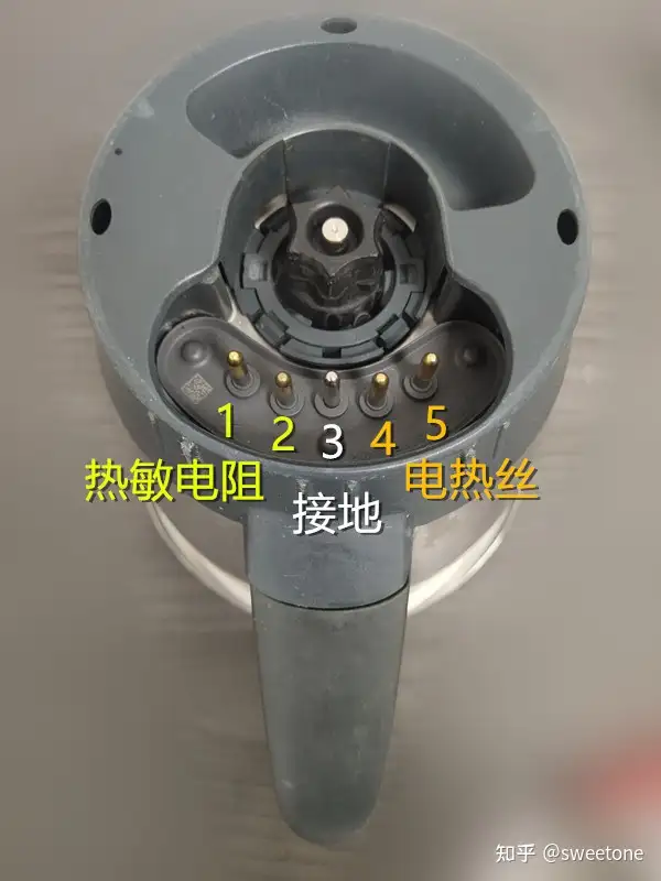 再检测锅子底座上1,2针之间阻值只有15K欧姆,好像比150K欧姆低的太多,是否是这个原因拉低了热敏电阻两端的阻值?将锅子插在底座上,测得1,2针之间电压有3V左右,好像电压并未过低。