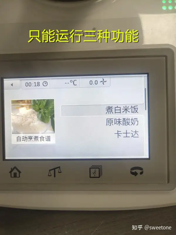 小结:通过拆机维修,知道该机就是带搅拌功能,测温功能,电子称功能,锅盖锁功能的智能电热锅,价格卖的贵,估计卖的是具有交互程序的菜谱存储卡的知识产权。因为没有菜谱存储卡,该机只能当普通电饭煲使用,而有了菜谱存储卡,普通用户也能烹饪一般或高难度的菜肴。操作实例如图所示。