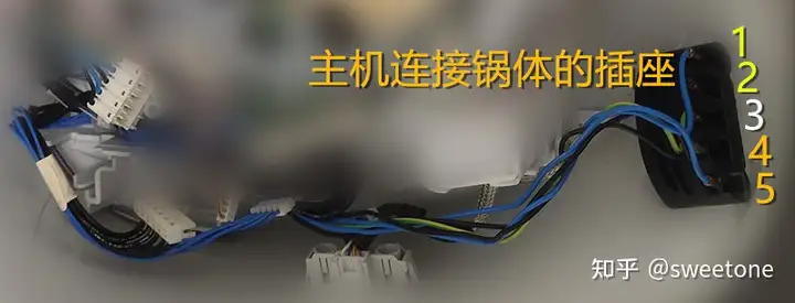 从故障现象分析,可能是料理机的主控芯片检测到锅内温度过高信号,而做的提示并保护。测温用热敏电阻是安装在锅内,一般负温度系数的热敏电阻阻值是随着温度的升高而降低。所以,当温度过高的话,热敏电阻的阻值会很低,热敏电阻两端的分压电压也会很低。测量锅底插针:测出1,2针之间阻值是150K欧姆左右,3脚独立,4,5脚之间阻值是45欧姆左右。估计1,2针之间是热敏电阻,阻值应该正常,并未过低。3脚是保护接地。4,5脚之间是电热丝,阻值也正常。