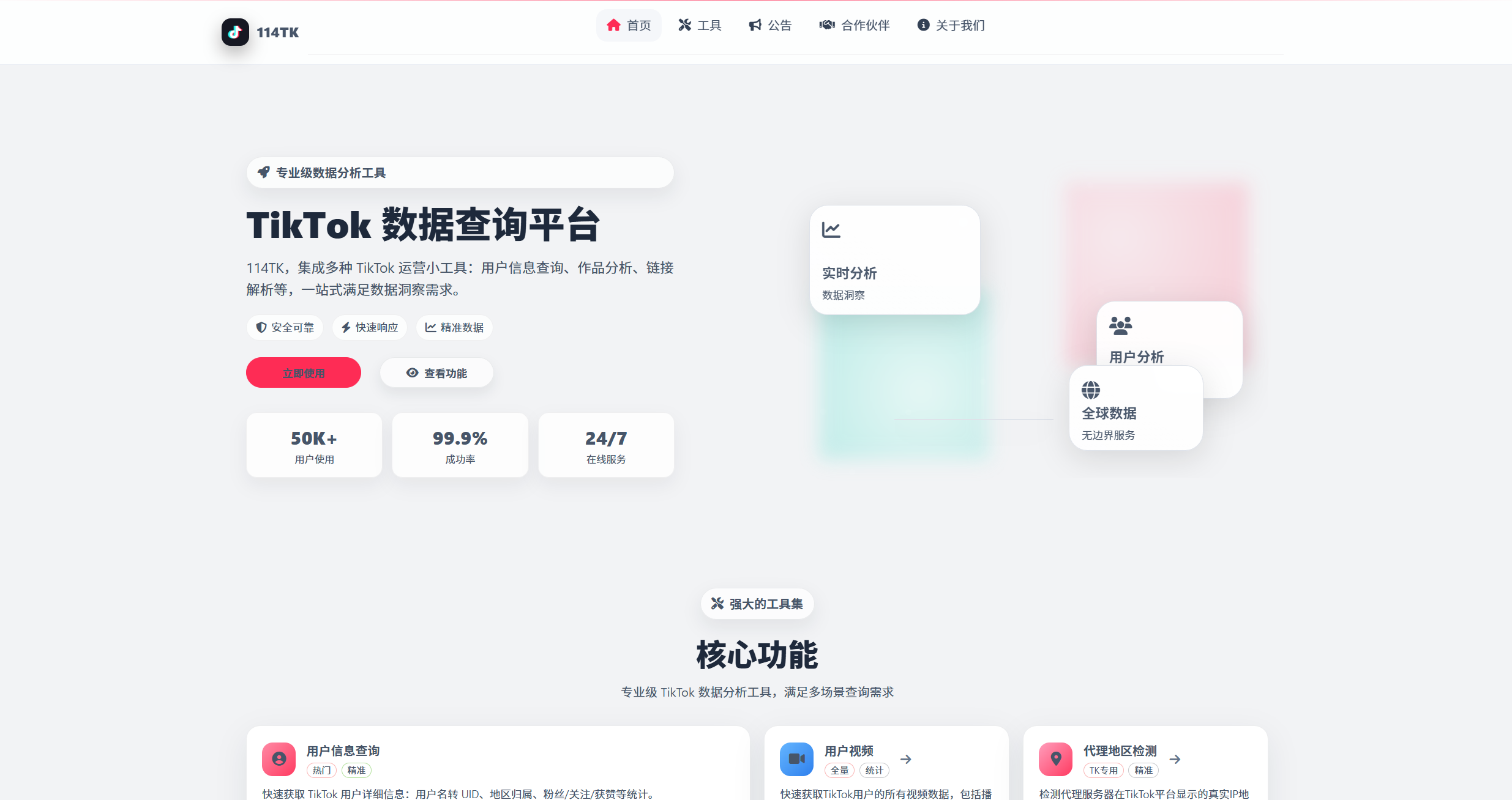 2.数据功能集成:提供用户信息查询、作品数据分析、链接解析等工具,满足日常数据复盘需求。