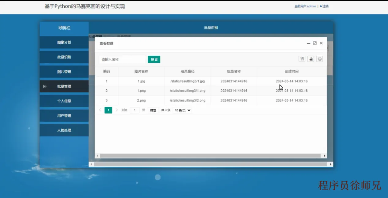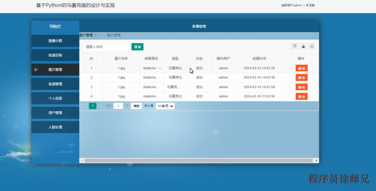 提供的对图片文件进行组织、存储、检索和操作的功能模块。通过图片管理功能,用户可以方便地上传、查看、编辑和下载图片,实现对图片文件的有效管理和利用,从而提升工作效率和用户体验。如上图3-5所示。