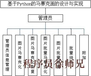 该系统的总体设计将以Django框架为基础,通过Python编写各个功能模块。管理员可以通过后台管理系统进行首次登录和身份验证,然后进行管理员信息的管理,包括账号权限设置、账号信息修改以及新增、删除管理员账号等操作。此外,管理员可以通过上传图片并选择马赛克处理方式实现图片马赛克化功能,并支持马赛克化恢复操作。批量功能方面,提供图片批量马赛克化和批量恢复功能,以及统计功能,可统计马赛克化恢复成功或失败的图片数量等。附加的人脸马赛克处理功能也将实现,通过人脸识别和处理算法,将除主体人脸以外的其他人脸进行马赛克化,以保护个人隐私信息。总之,后台将提供全面、稳定且高效的功能实现,满足管理员对于图片处理和管理的需求。详细的系统总体设计图如下图3-1所示。