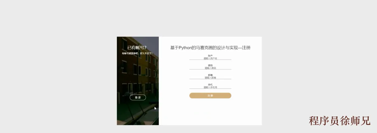 提供用户注册和登录两种操作,注册页面将包括填写用户名、密码等信息的表单,用户成功注册后即可通过登录页面输入凭据进行登录。页面翻转效果将为用户提供更加生动的交互体验,使注册登录过程更加吸引人并增加用户参与度。如上图3-2所示。