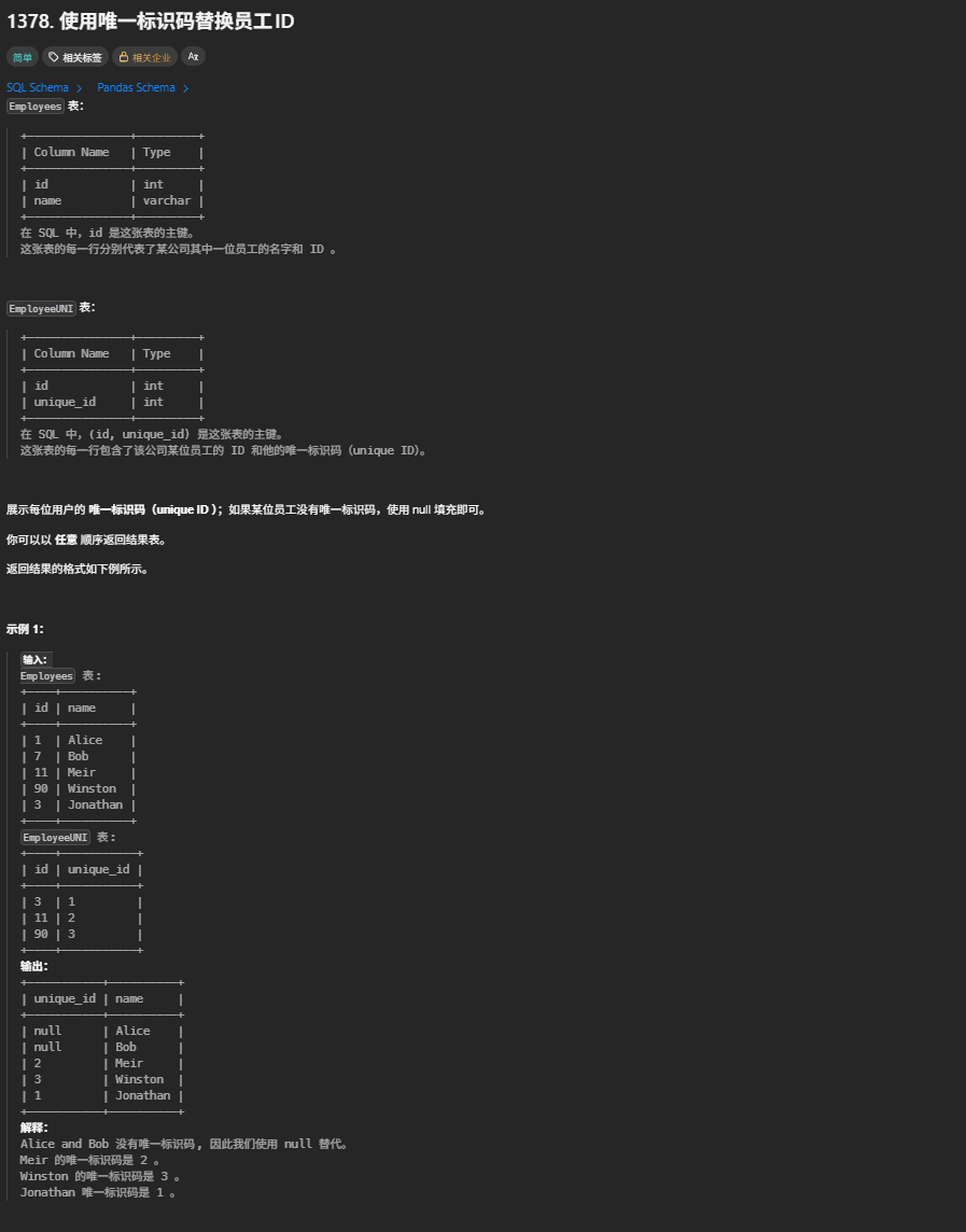 FROM Employee e LEFT JOIN Bonus b ON e.empId = b.empId 以 Employee 为左表做左连接,保留所有员工记录: