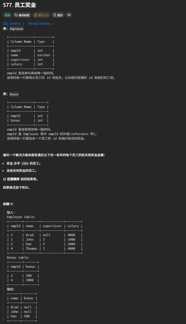 b.bonus IS NULL:无任何奖金(左连接产生的空值)