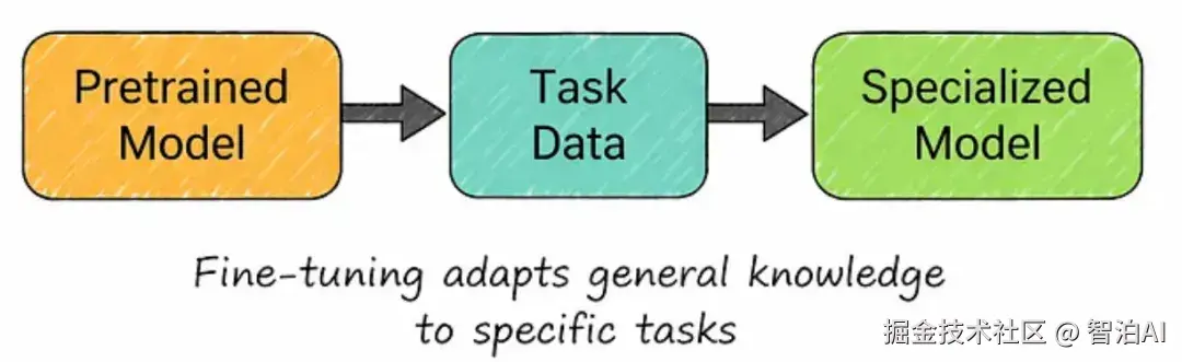 咱们不用再从零起步,而是拿一个已经在通用任务上练得很厉害的"大神级"模型,然后稍微调整一下,让它适配咱们的具体场景就行。