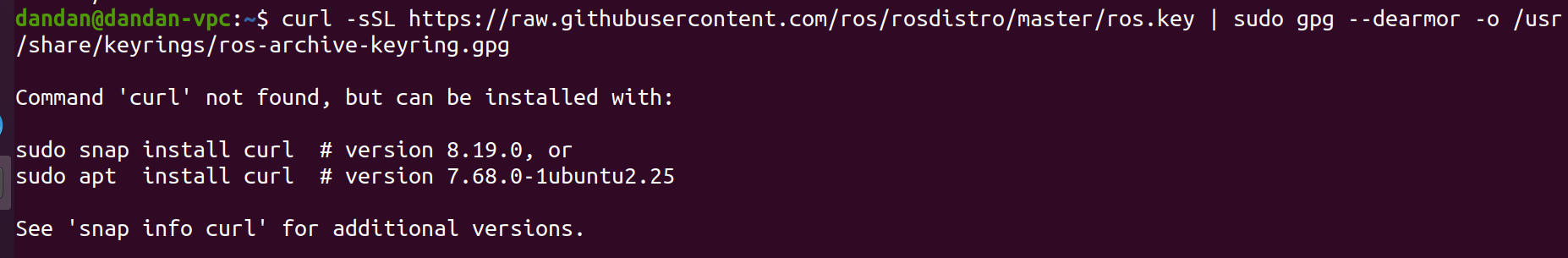 curl -sSL https://raw.githubusercontent.com/ros/rosdistro/master/ros.key | sudo gpg --dearmor -o /usr/share/keyrings/ros-archive-keyring.gpg