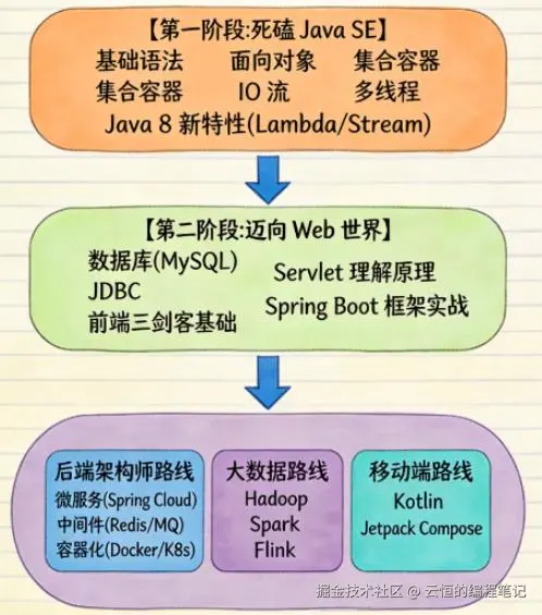💡 小贴士:如果你学Java是为了Android开发,推荐直接学Kotlin。如果是学后端Java,Java SE是必修课。