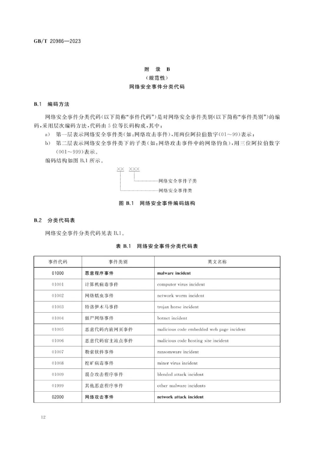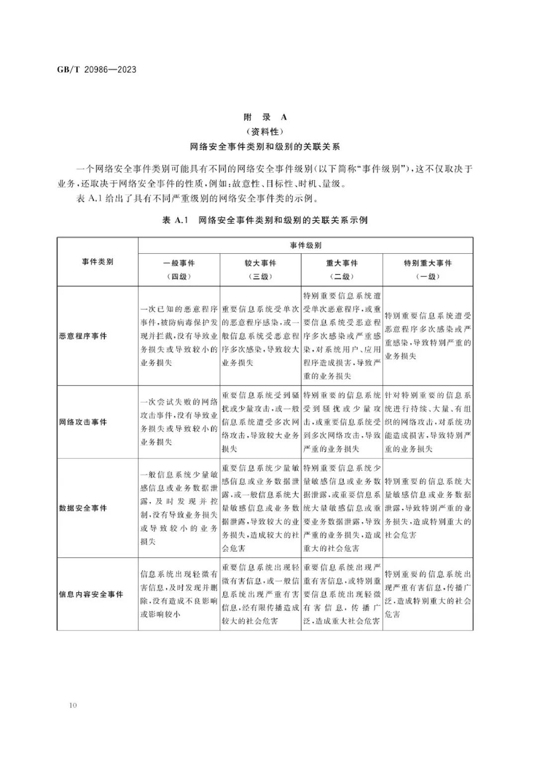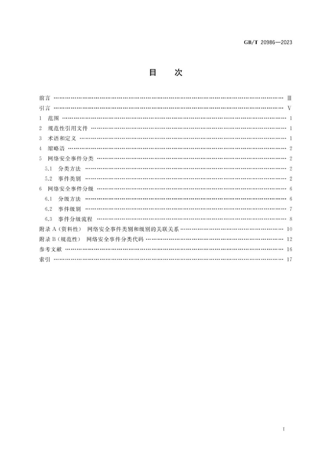 GB/T 20986-2023《信息安全技术 网络安全事件分类分级指南》于2023年5月23日发布,同年12月1日正式实施,替代了2007年的旧版文件。