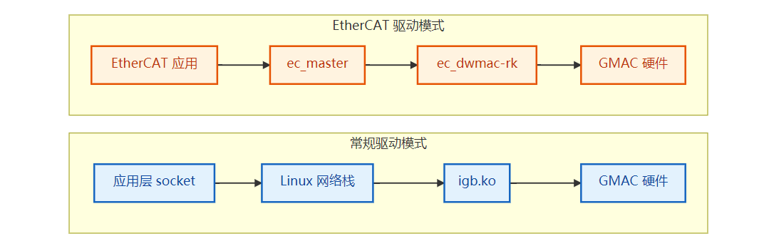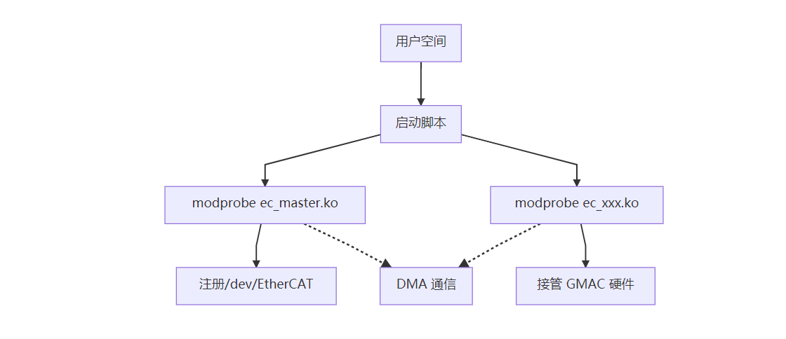 双模块协作 - ec_master.ko 提供框架,ec_xxx.ko 驱动硬件