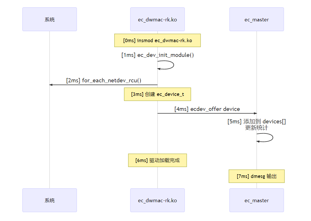 加载ec_master模块:加载EtherCAT主站核心模块,提供基础通信能力。