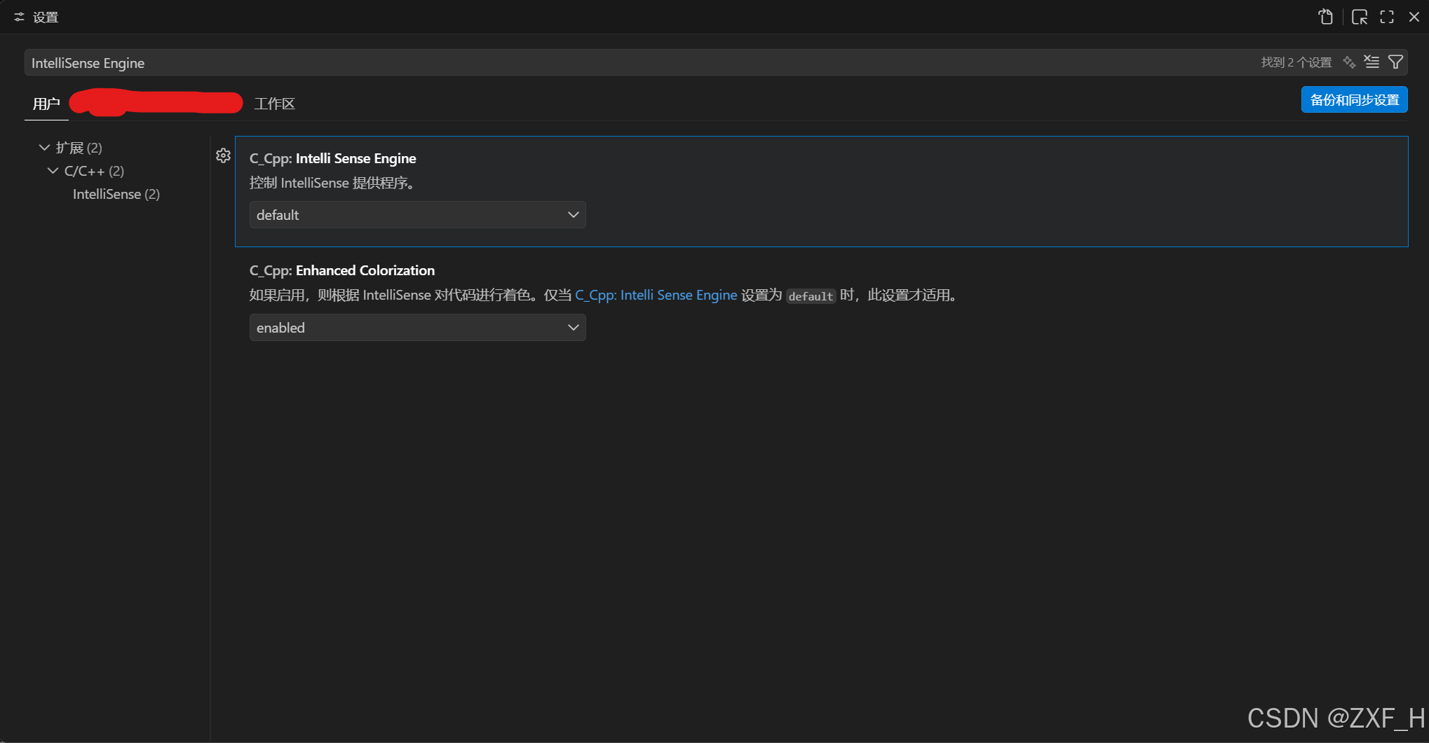 找到 C_Cpp.intelliSenseEngine 选项。