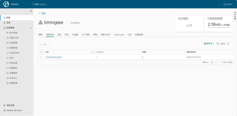 root@docker-node1 \~\]# docker images IMAGE ID DISK USAGE CONTENT SIZE EXTRA 搜索镜像 \[root@docker-node1 \~\]# docker search nginx NAME DESCRIPTION STARS OFFICIAL nginx Official build of Nginx. 21206 下载镜像 \[root@docker-node1 \~\]# docker pull nginx Using default tag: latest latest: Pulling from library/nginx 9eef040df109: Pull complete df9da45c1db2: Pull complete 79697674b897: Pull complete a9d395129dce: Pull complete 206356c42440: Pull complete 75a1d70aee50: Pull complete 18a071c04bd1: Pull complete 23abb0f9ce55: Download complete d99947bc9177: Download complete Digest: sha256:bc45d248c4e1d1709321de61566eb2b64d4f0e32765239d66573666be7f13349 Status: Downloaded newer image for nginx:latest docker.io/library/nginx:latest \[root@docker-node1 \~\]# docker pull busybox Using default tag: latest latest: Pulling from library/busybox 61dfb50712f5: Pull complete 96cfb76e59bd: Download complete Digest: sha256:b3255e7dfbcd10cb367af0d409747d511aeb66dfac98cf30e97e87e4207dd76f Status: Downloaded newer image for busybox:latest docker.io/library/busybox:latest 查看镜像提交历史 \[root@docker-node1 \~\]# docker history busybox:latest IMAGE CREATED CREATED BY SIZE COMMENT b3255e7dfbcd 17 months ago BusyBox 1.37.0 (glibc), Debian 13 4.49MB \[root@docker-node1 \~\]# docker images IMAGE ID DISK USAGE CONTENT SIZE EXTRA busybox-file:latest e93187408c68 6.71MB 2.21MB nginx:1.26 41b194461e4b 279MB 75.2MB 导出镜像 \[root@docker-node1 \~\]# docker save -o game2048-latest.tar timinglee/game2048:latest 删除镜像 \[root@docker-node1 \~\]# docker rmi timinglee/mario:latest 导入镜像 \[root@docker-node1 \~\]# docker load -i game2048-latest.tar 运行镜像 \[root@docker-node1 \~\]# docker run -d --name web nginx:1.26 0471dadd1d29c72b28ba6dad490277a7bb65c682c13c8341bccf74add988cdc4