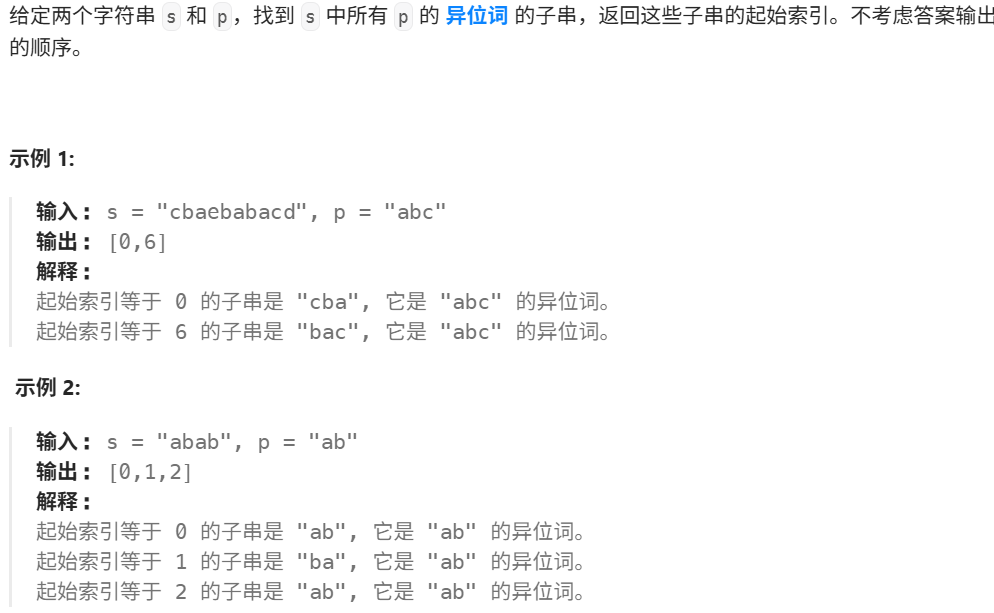 这个时间复杂度为O(n),双指针的方法用在这里很正常,比较新奇的一点是这个解法先定义了两个vector,然后利用字母出现的频次来判断是否异位,很巧妙。