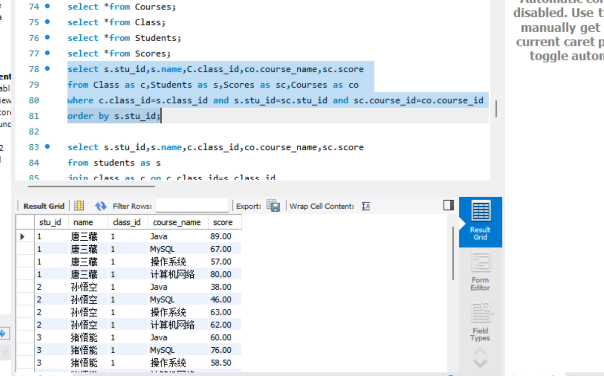 4.查询唐三藏同学的成绩alter