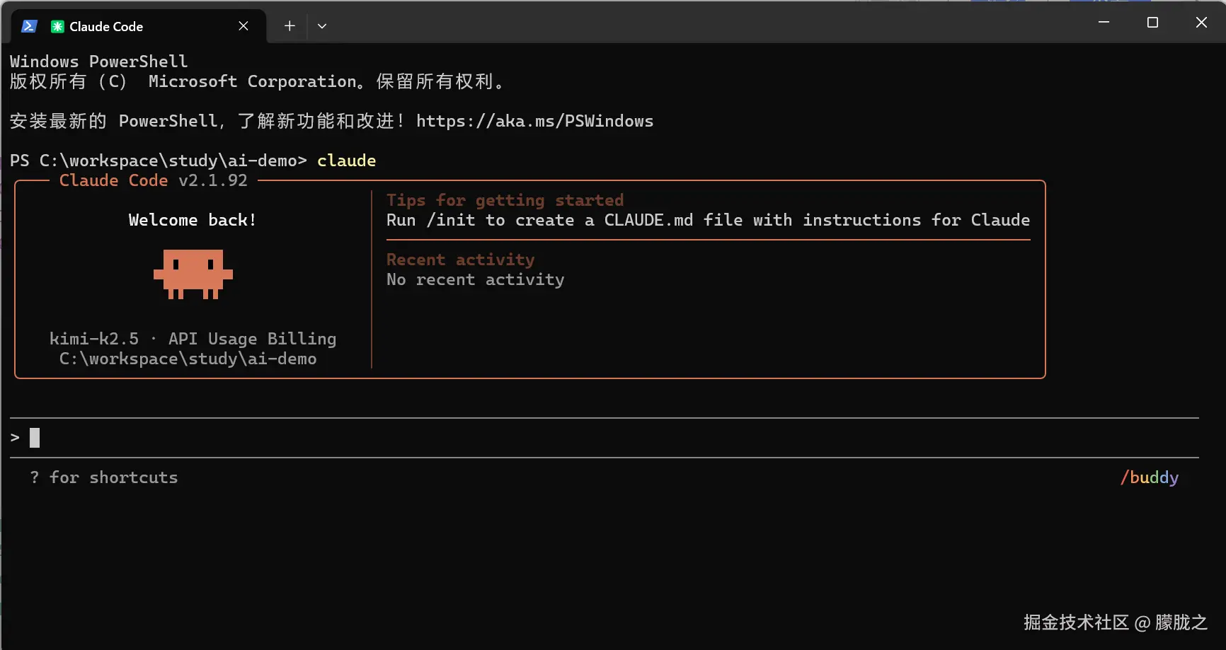 - 安装完成后可以看到模型已经切换成我们刚才配置的kimi了。