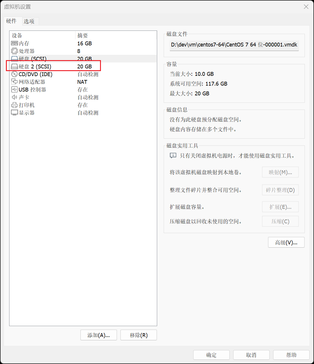 虚拟机中的系统,一旦设置了磁盘大小,后续是无法直接通过配置界面直接扩容的