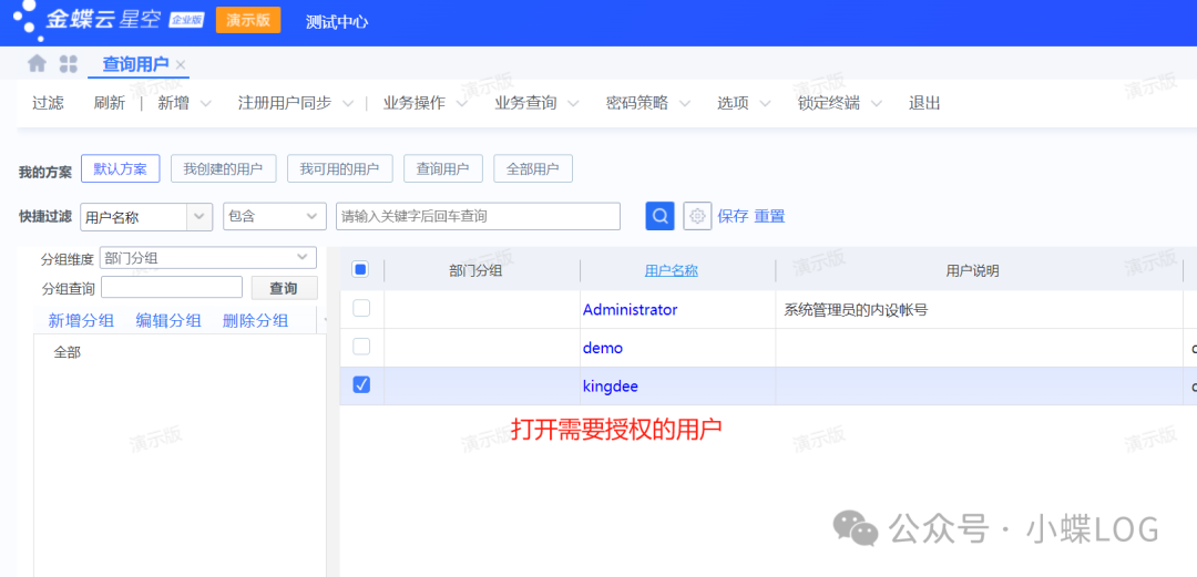 找到需要授权的用户