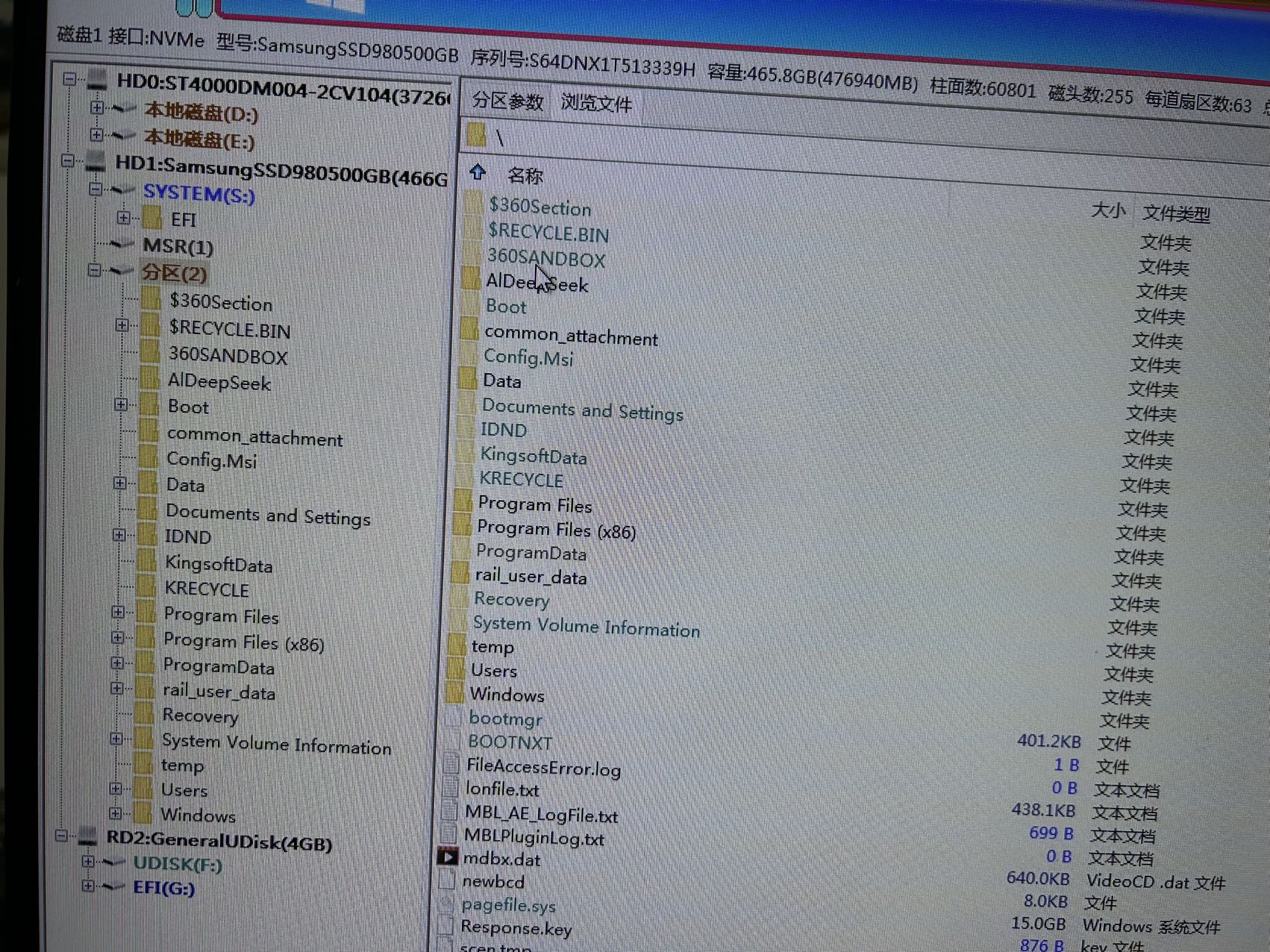 在PE中打开DiskGenius,查看硬盘分区结构: