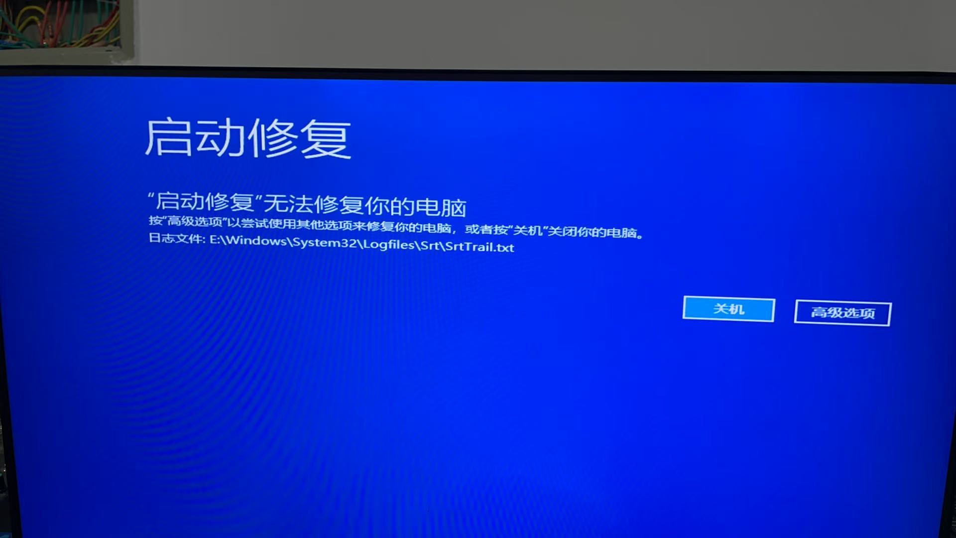 按F1进入恢复环境后,尝试"启动修复",几分钟后提示修复失败,日志文件位于 E:\Windows\System32\Logfiles\Srt\SrtTrail.txt,错误代码变为: