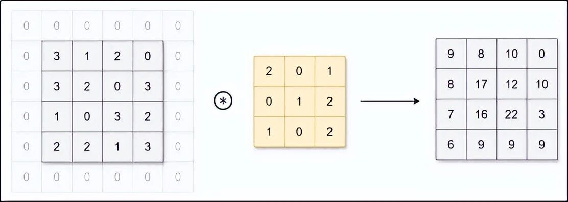 你会发现,每次卷积后,图片都会变小一点。比如 32×32 的图片,用 3×3 卷积核,步幅为 1,卷积后变成 30×30。如果连续做很多次卷积,图片会迅速缩水,甚至消失。